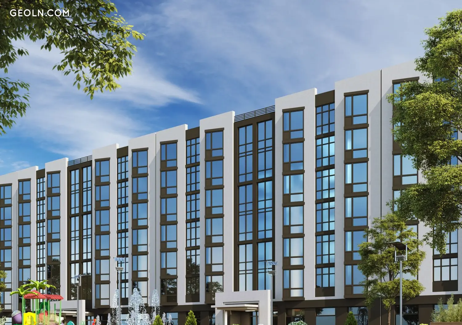 City House Resort是度假区新社区的第一个住宅区,距离海岸线50米。从新大楼公寓第三部分的窗户可以俯瞰大海。入口从拥有设计师室内设计的接待区开始。房屋的底层设有提供各种服务的房间:商店、咖啡馆、美容院、药房。相邻区域的布置考虑了现代空间组织的要求:儿童和运动场、带喷泉的休闲区。