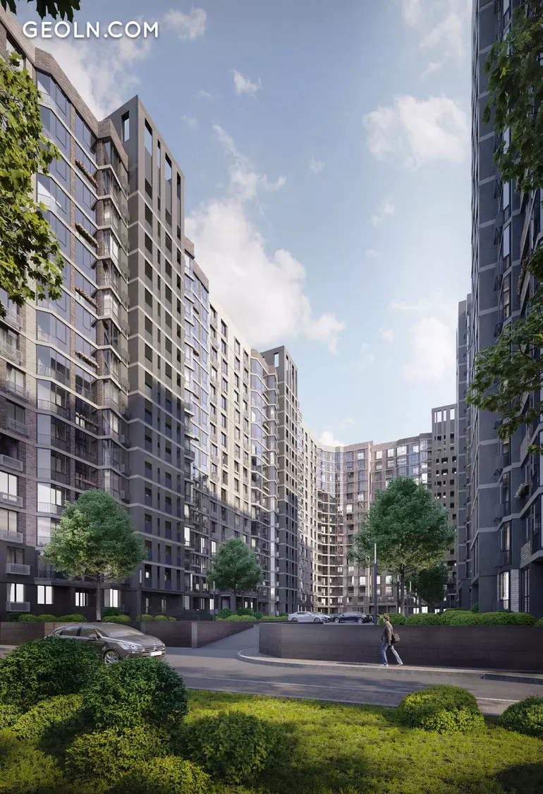 住宅区的名称与尺寸相对应-它是整个季度,房屋位于周边,形成一个半开放的空间。庭院整洁,设有游乐场和运动场,凉亭和人行道。