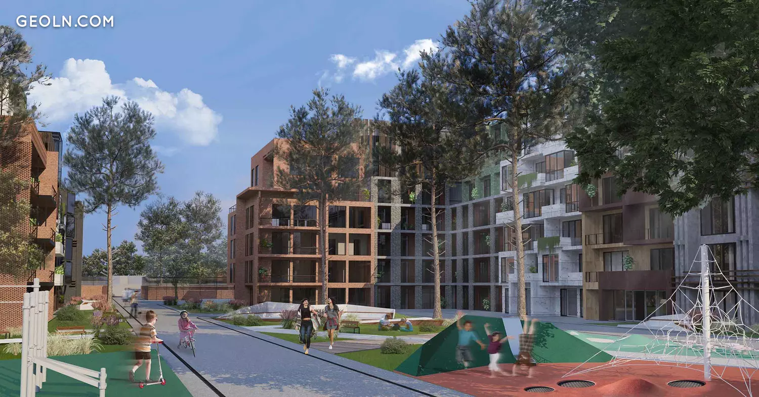 При проектуванні будинку було враховано напрямок вітру і виникнення повітряних вихорів, щоб встановити додатковий захист від вітру і шуму. Зонування і проектування територій спільного користування буде проводитися разом з мешканцями.