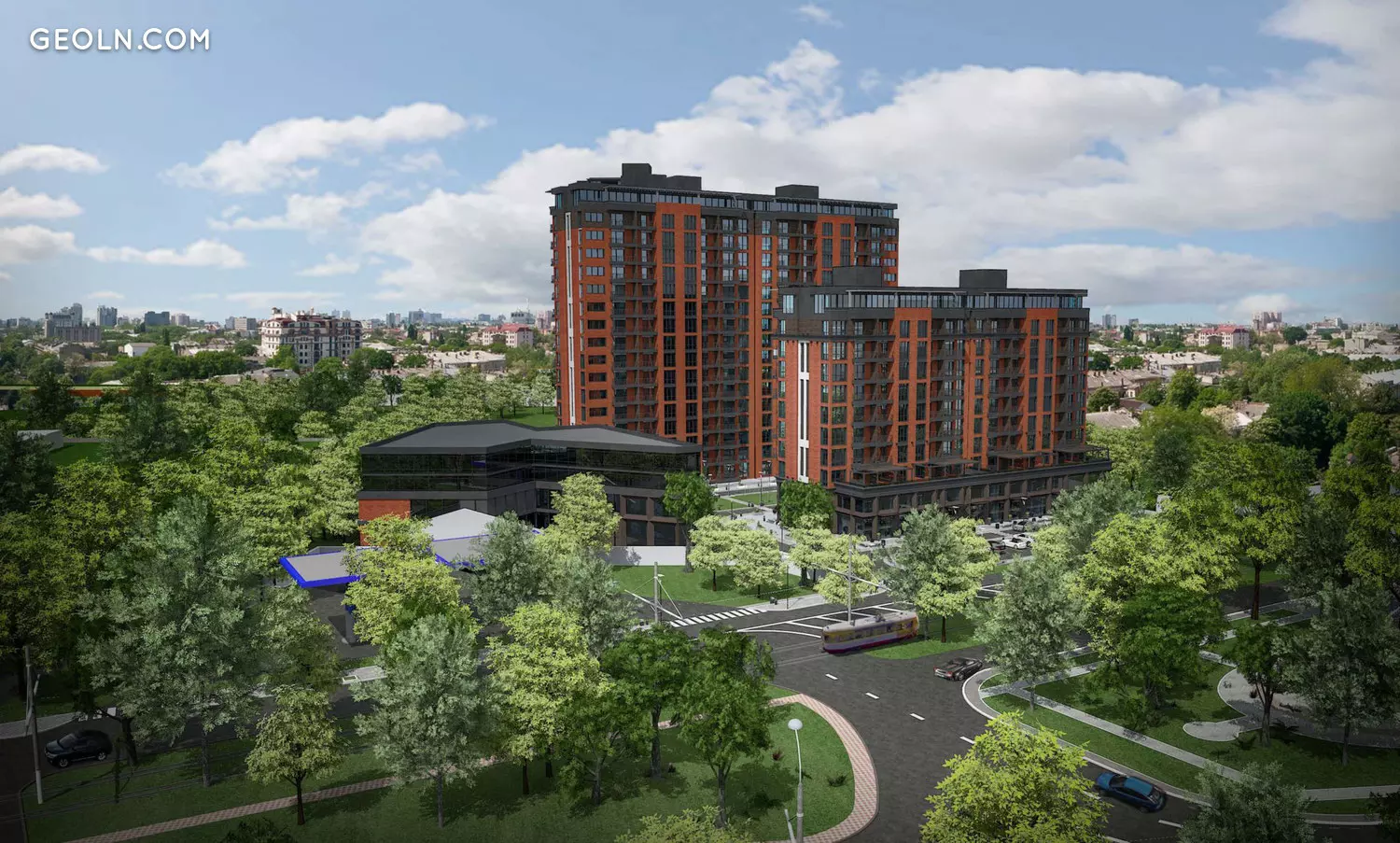 德比风格之家的名字来自窗外的敖德萨竞技场。住宅区位于大喷泉公园区的周围。大楼的配色方案使该地区的其他房屋与其他地区的Derby Style House区别开来:红砖墙与阳台和窗户的深色设计形成鲜明对比。景观设计师还将照顾庭院的设计,长廊的布置以及在树林中放松的地方。
