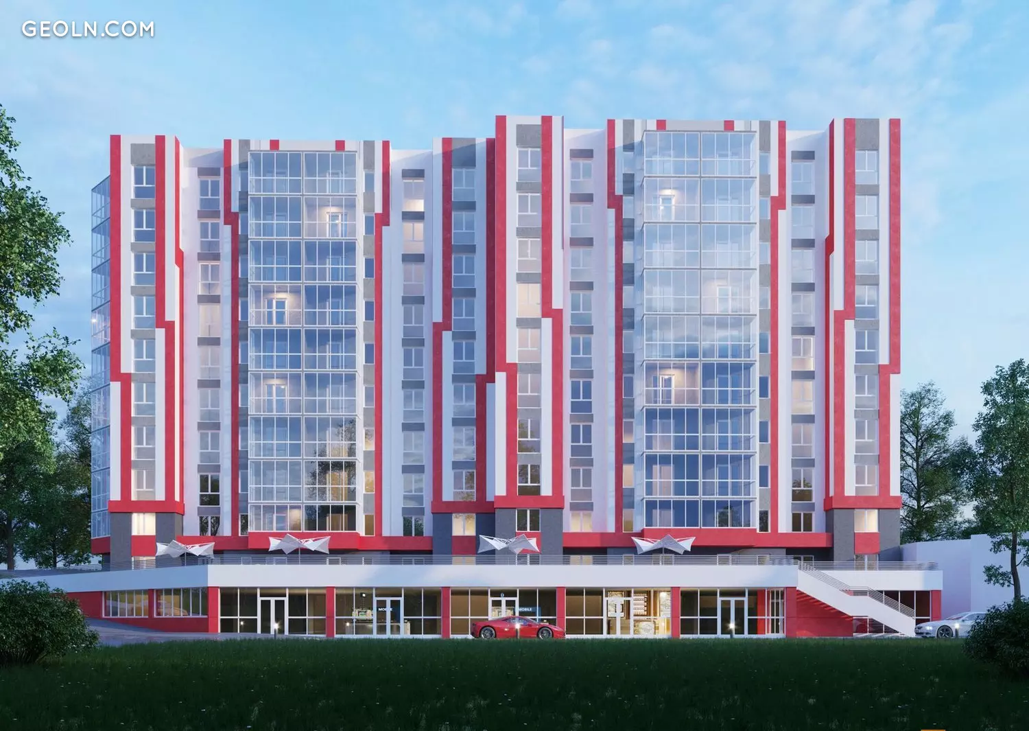 两段式10层高的住宅区。 2个入口。 在两个部分中设计了104套公寓。 一楼-商业公共空间。 2-8层-标准布局的住宅公寓。 9-10层-两层公寓。