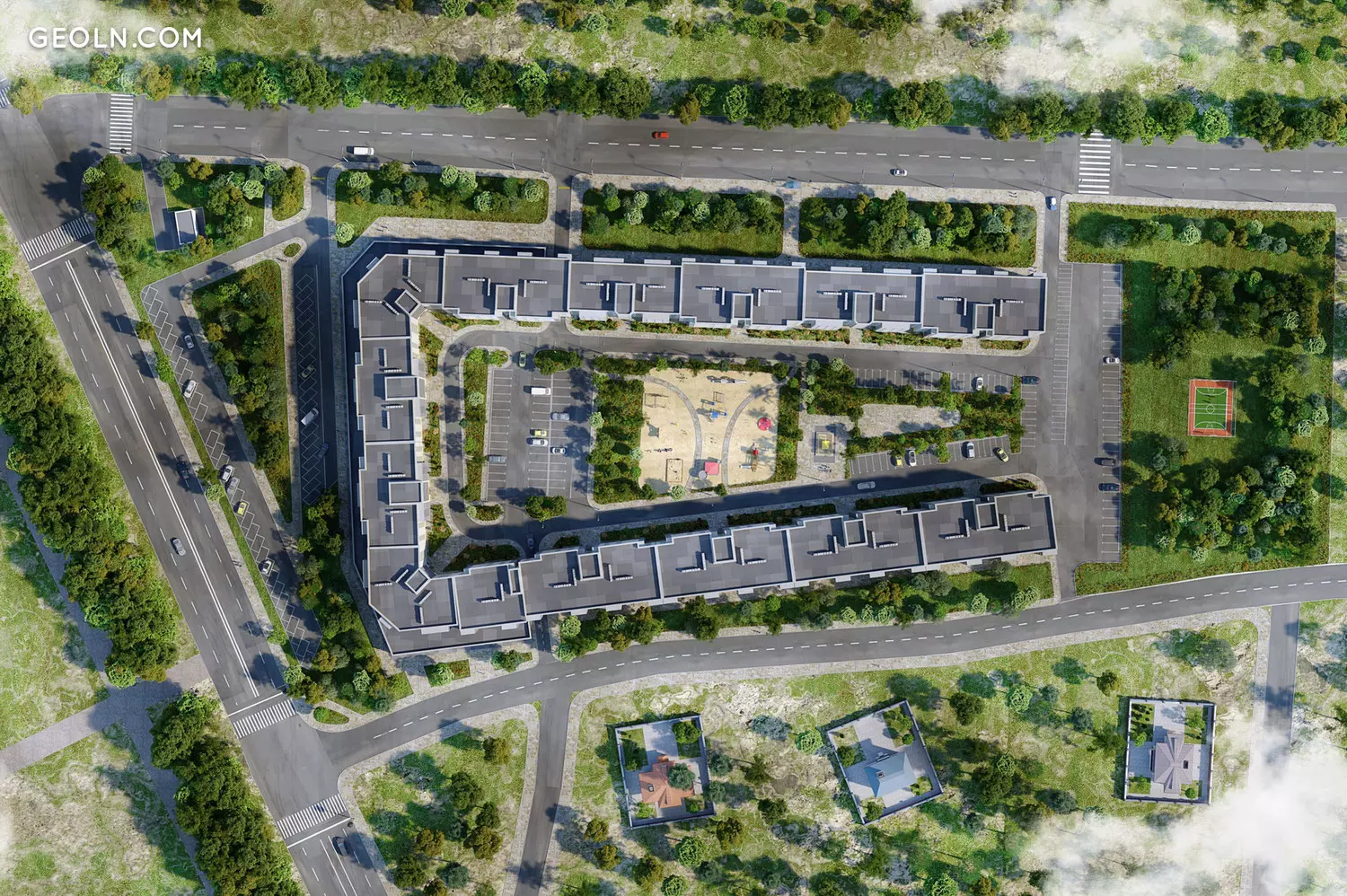 “索非亚”是一个舒适级别的住宅区,是一栋五层楼的建筑,其十三部分以字母“ P”的形式放置。