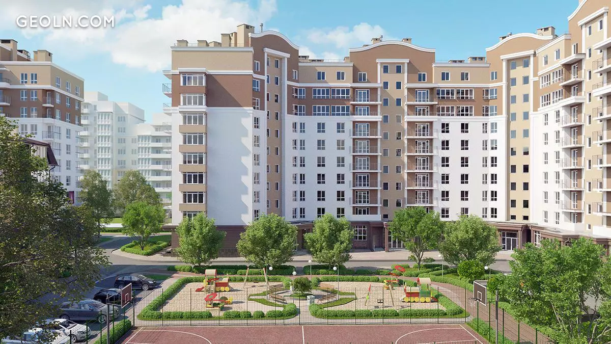 在住宅区范围内铺设了行车道和人行道。设有客车和居民汽车的停车位,并安装了路灯。设有游戏,运动场和休闲区的游乐场。种植观赏灌木和树木。
