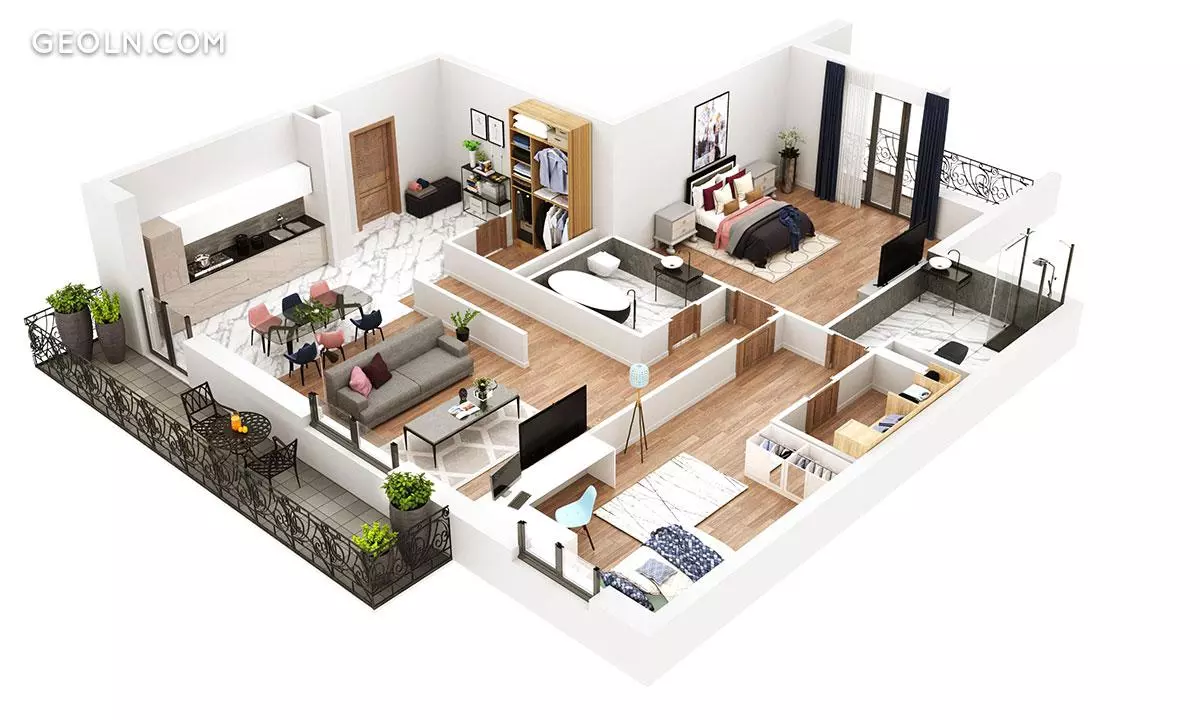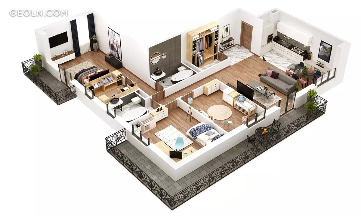 в каждой квартире предусмотрены гардеробные и по два санузла