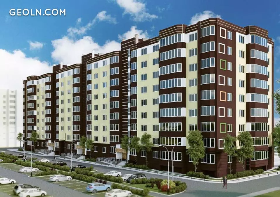 “ Domashny”是一个住宅区,是一栋9层高的整体框架十三节房屋,创建了一个封闭的庭院,该庭院中将配备儿童游乐场和汽车停车位。