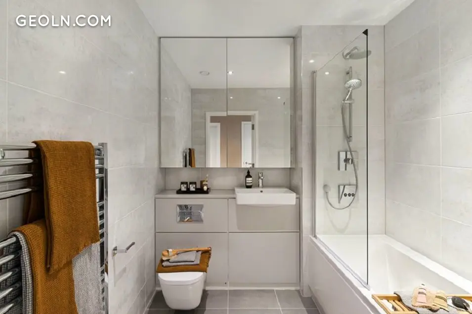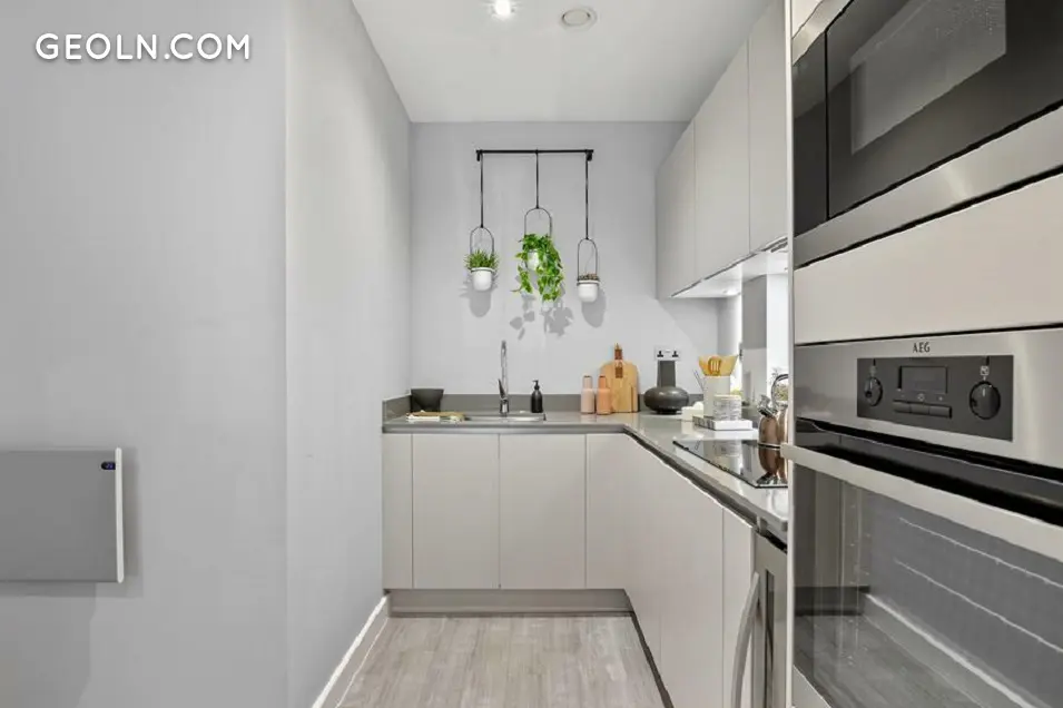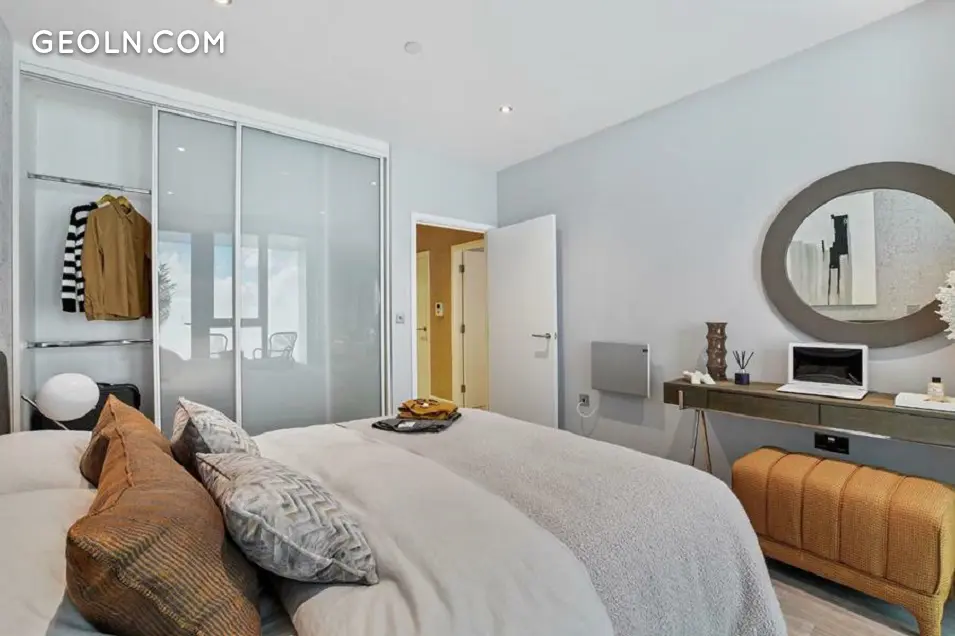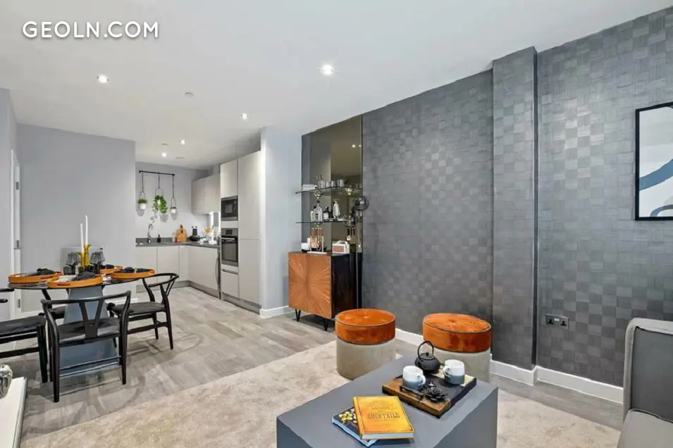BRX 包括四栋公寓楼和一排位于 Rumsey 路的迷人联排别墅。外墙大多采用浅色砖砌,点缀着白色和金色镶板。然而,为了在中层邻居中脱颖而出,这座 20 层高的建筑选择了单独的面板而不是砖砌。该开发项目受益于巨大的全高窗户和离散的堆叠阳台,带有光滑的玻璃栏杆或带有复杂图案的金色栏杆。