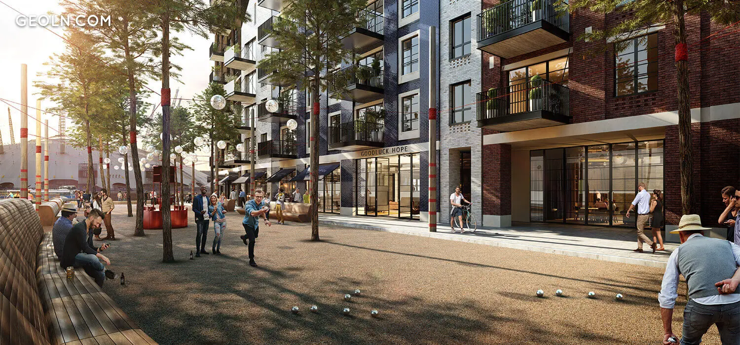 Goodluck Hope 坐落在熙熙攘攘的金丝雀码头和皇家码头之间,坐落在一个僻静的岛屿上,坐落在迷人的水道中,例如 Bow Creek、东印度码头盆地,当然还有泰晤士河,这些水道保护着这座建筑群免受大都市的喧嚣.居民受益于靠近一系列令人印象深刻的购物中心、商店、餐厅、酒吧和由金丝雀码头和皇家码头容纳的大型场所,同时享受位于伦敦自治市镇边缘的河畔世外桃源所营造的和平与宁静。塔哈姆雷特。
