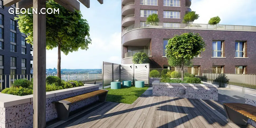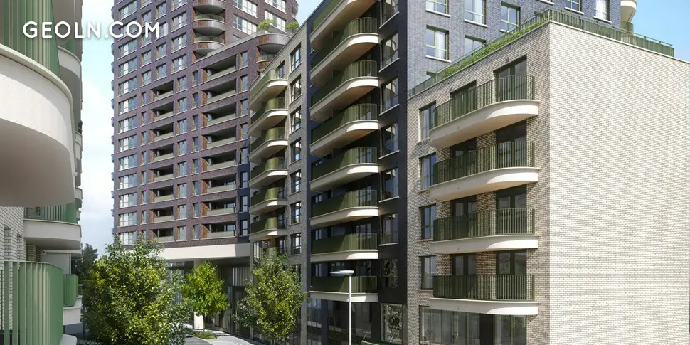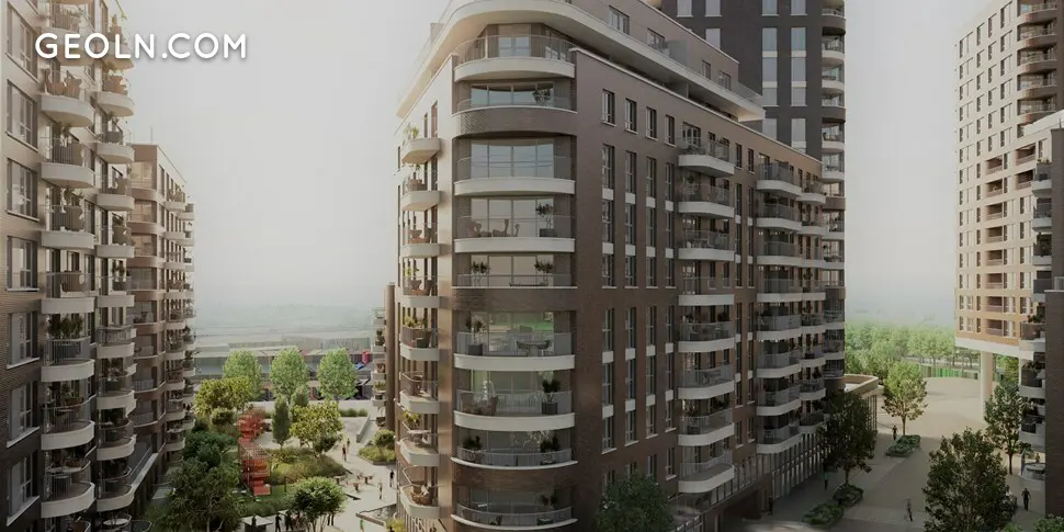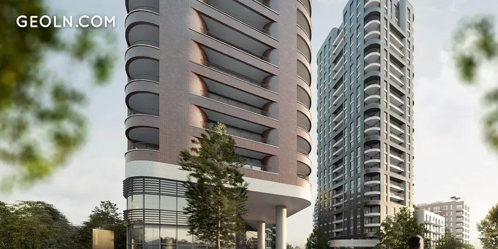 新住宅区隐藏在 Old Oak Common Lane 旁边的一个小口袋里。高层开发的特点是柔和的线条、圆角和一系列舒缓的色彩。调色板包括棕色、灰色、白色、米色,甚至谨慎的绿色色调。优雅的缩影,光滑的砖砌外墙布满了落地窗,让居民可以在家中沐浴阳光。此外,新月形的阳台与奥克兰高地的建筑无缝融合。