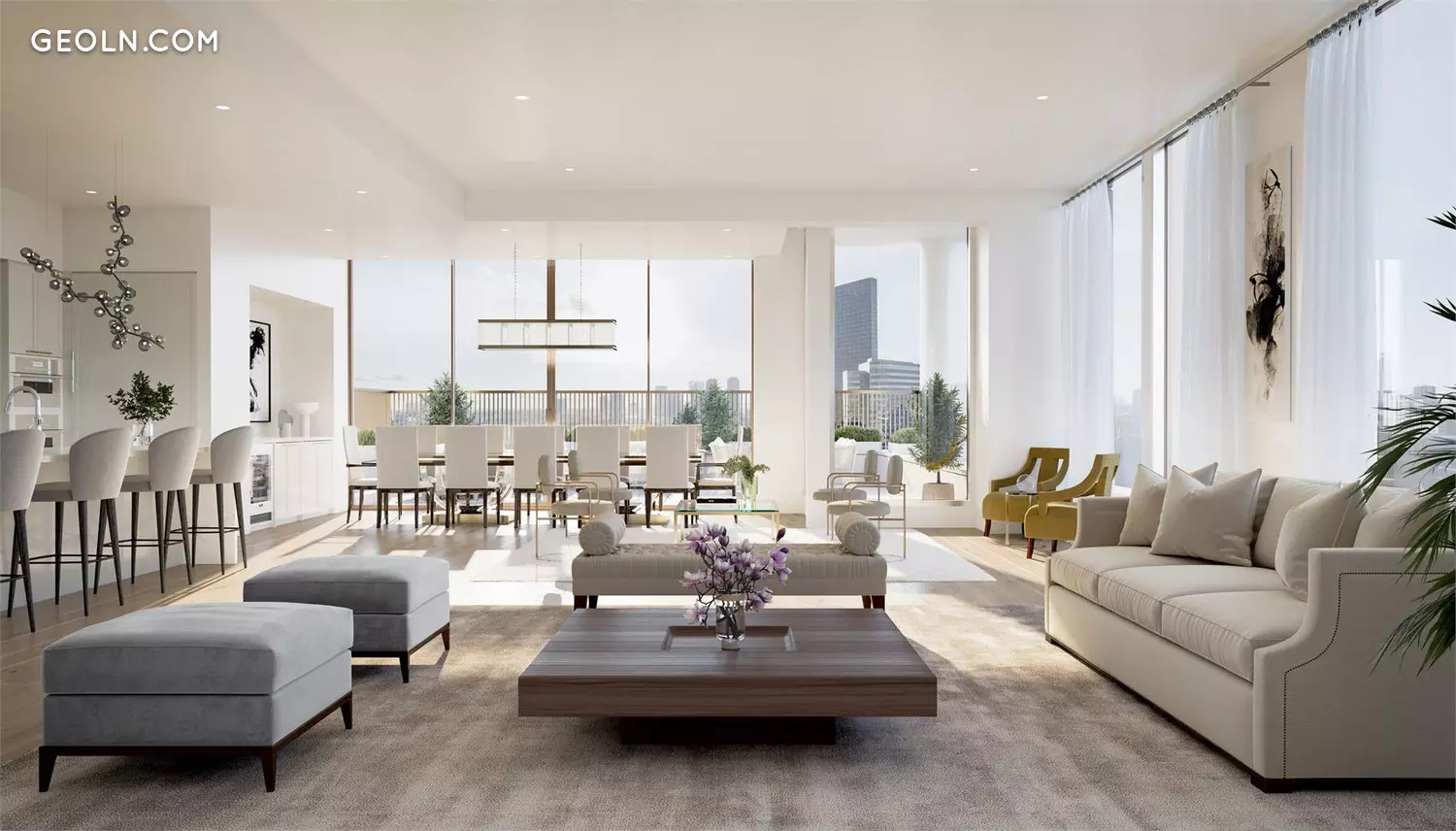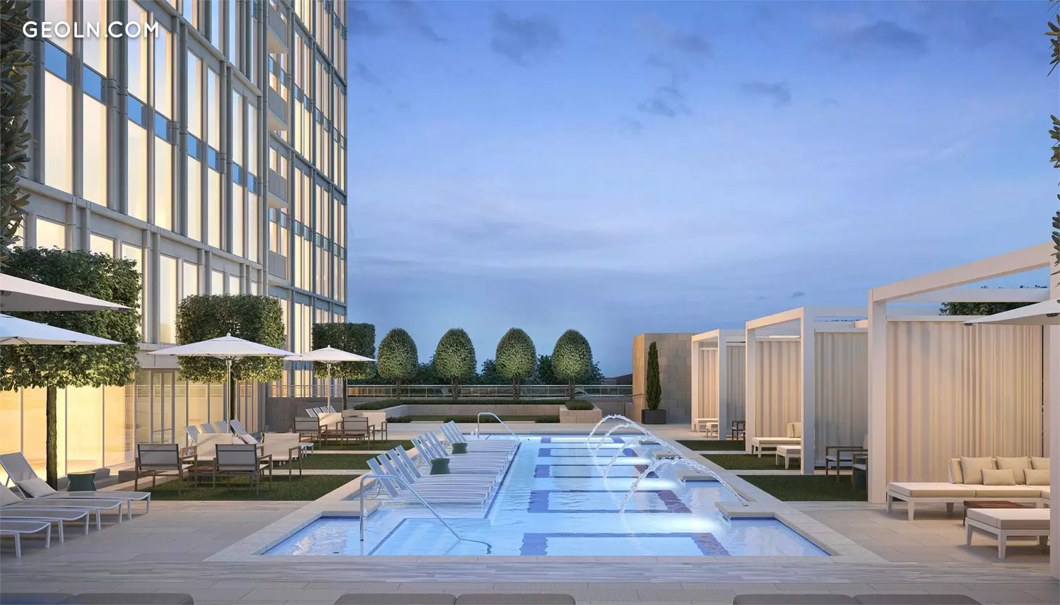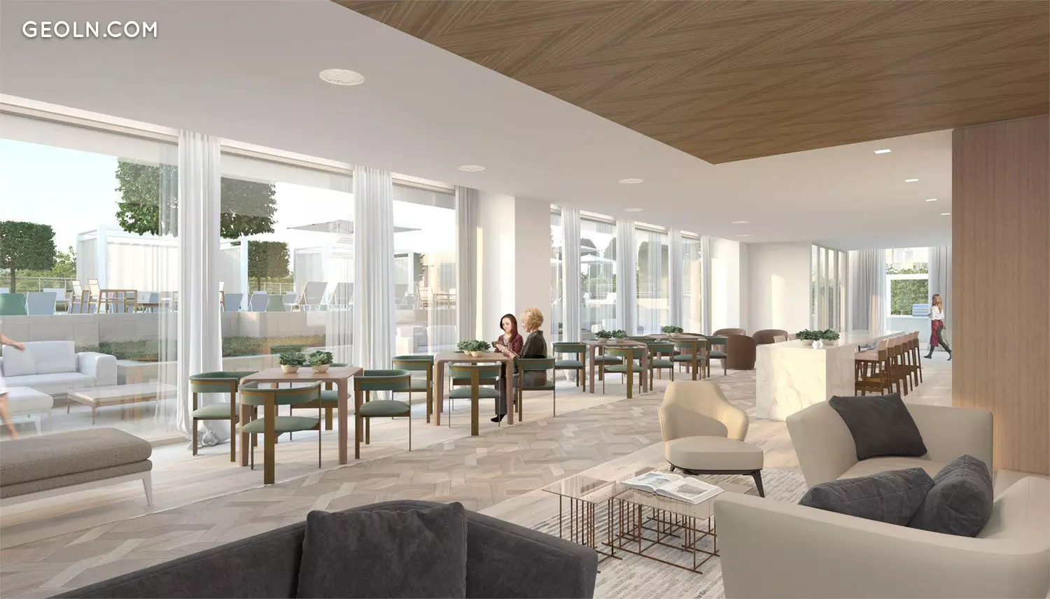 为了符合Farrington的最初邻里计划,Pelican Builders和全球名人堂室内设计师Lauren Rottet从Tanglewood黄金地段的周边美景中汲取了灵感,为这座新的17层高层建筑提供了灵感。 这位标志性的设计师将溢价放在整个绿色空间上,包括将常春藤完全包裹在外围的常春藤层,以及被绿荫环绕的引人注目的港口长廊。