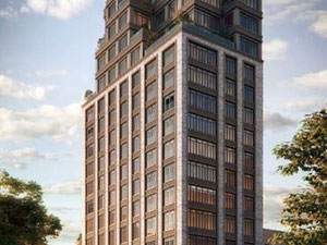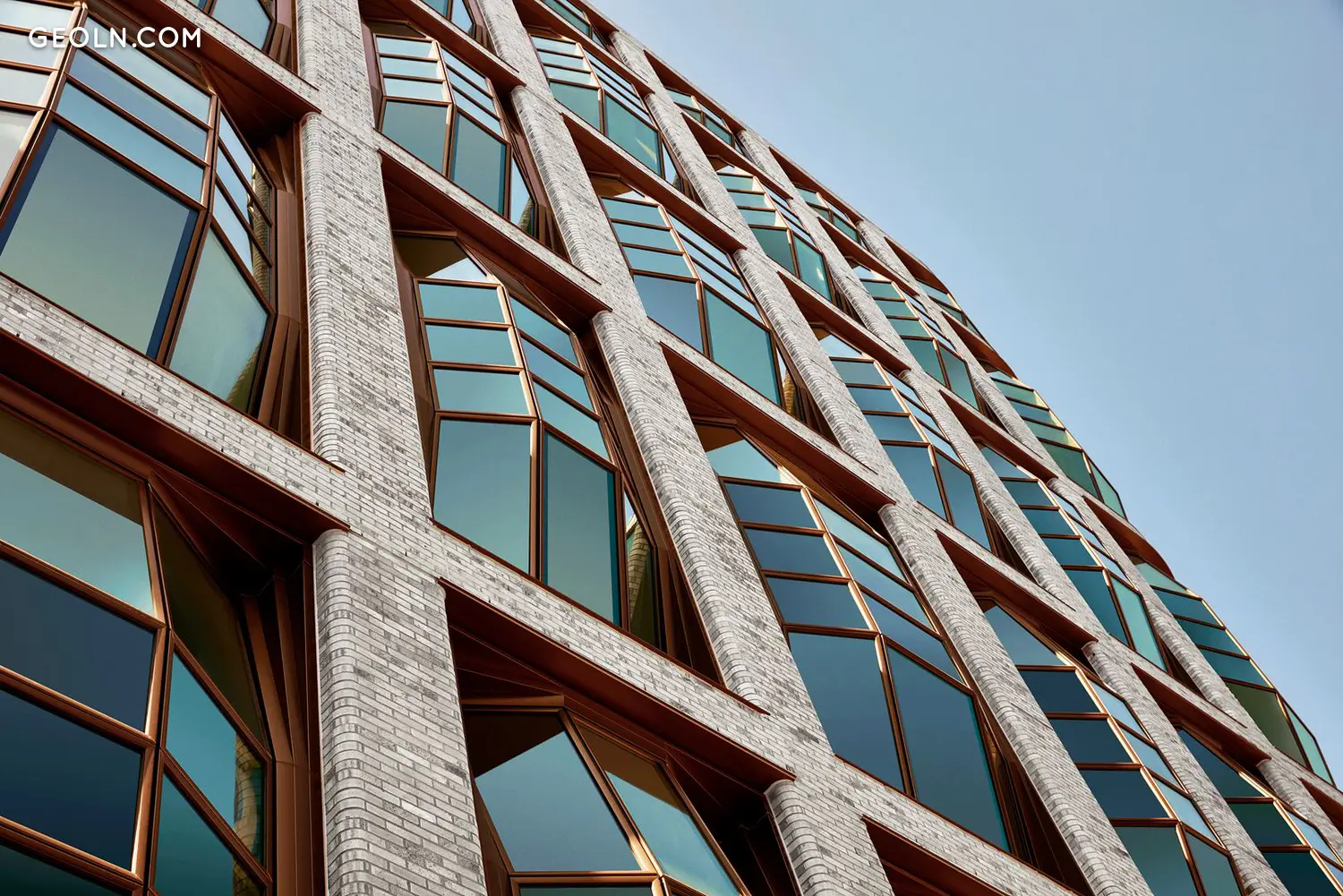 抛光青铜饰面的水厂装置,壁挂式Toto座便器和辐射式地暖。
