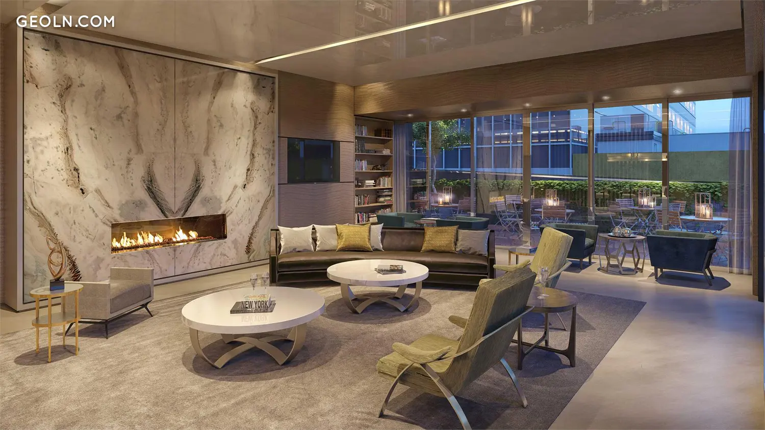 就像每个住宅中精心塞入的小珠宝盒一样,化妆间布置典雅,配有Cremo Delicato抛光大理石墙和定制马赛克地板,在Calacatta Fab抛光大理石台面下面的抛光镍框架内定制了核桃木梳妆台,在下方安装了拉锤抛光镍水槽,并进口了意大利和Watermark定制抛光镍配件。