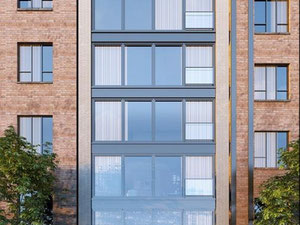 全玻璃幕墙反映出内部引人注目的当代住宅集合-法院广场街景的精致补充。这些公寓均以现代主义美学精心打造,遍布每个空间。优质的设计采用了最抢手的家庭技术元素,并与10英尺的天花板完美地融合到了每个住宅中。
